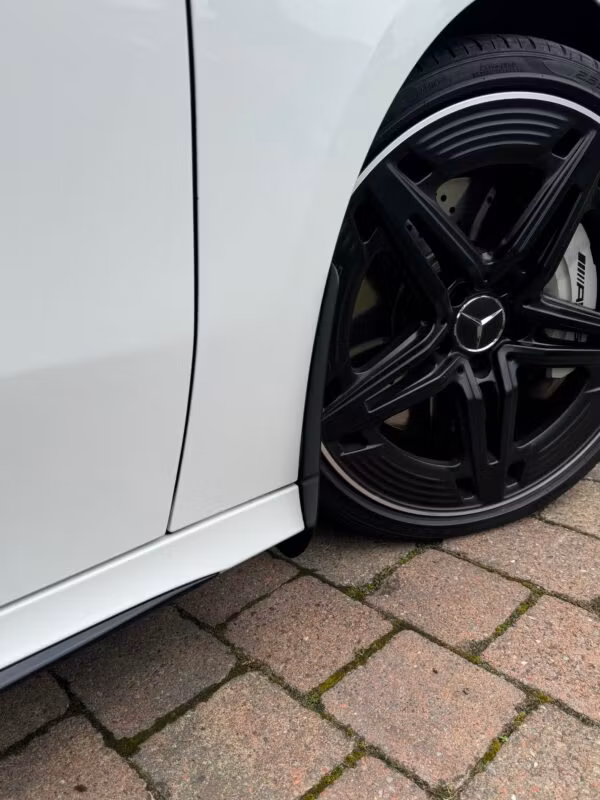 Diskreta stänkskydd för framhjulen, framtagna till Mercedes A-klass. Riktigt tunna skydd i helsvart pvc eller kolfiber ger din bil det skydd den förtjänar utan att sticka ut. Monteringen är enkel och smidig utan modifieringar på din bil. Framtagningen av stänkskydden är gjord med en tanke att det ska finnas en viss justermån i utsticket av stänkskydden.